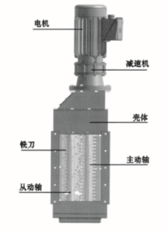 本机主要由驱动部件、主动轴、从动轴、铣刀、机械密封、壳体等。