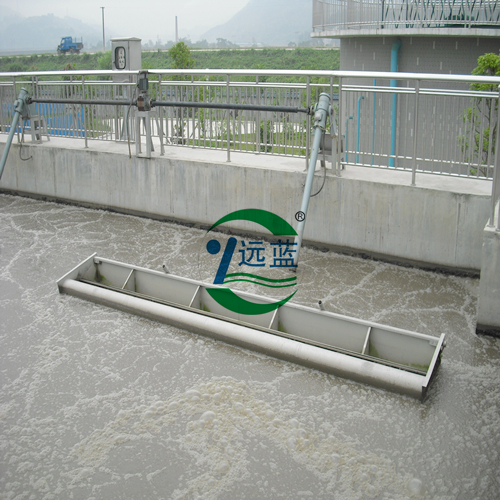 本设备主要由支座、电动减速机、电动推杆、浮筒式浮渣挡板、滗水堰、支管、排水主管、支承座、回转密封支承座、电控柜等部分组成。