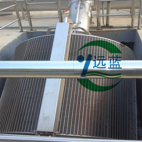 处理水中的漂浮物经栅框过滤后截留于框内、栅面上,随着截留污物量的增多,过滤面积逐渐减小,水头损失逐渐增大,当框内外水位差达到设定值时,除污靶自动回转梳除栅渣,卸入栅筐中的集渣斗内,由斗底部的螺旋输送机提升,栅渣边上行沥水,至顶端压榨段时挤压脱水,脱水后的固含量可达40%左右,入贮渣容器中,外运处理。