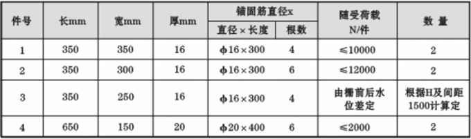 预埋件及其布置: